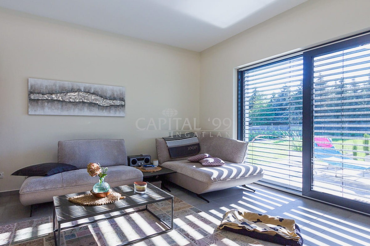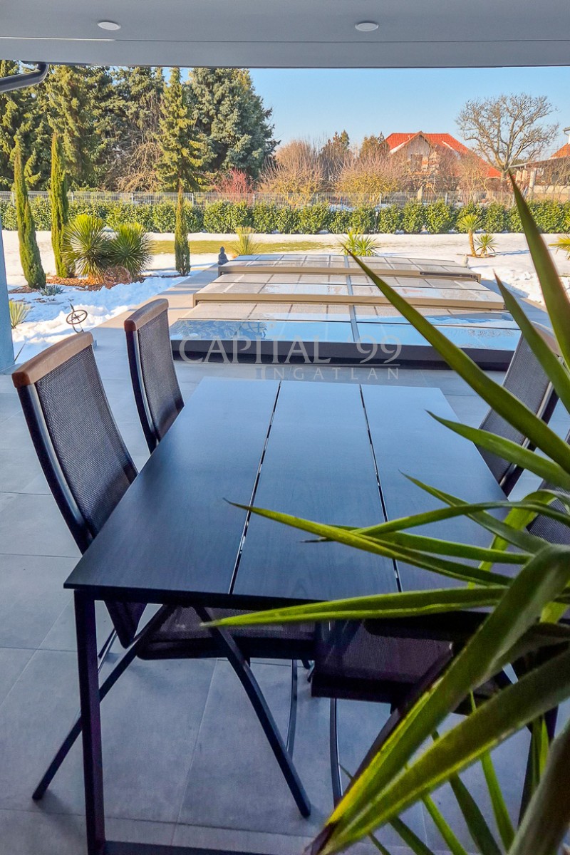 code number: 4357Hoogwaardige, vrijstaande woning van zeer goede kwaliteit, gelegen in Cserszegtomaj, in een rustige straat zonder doorgaand verkeer. De woning is zo goed als nieuw en wordt verwarmd door vloerverwarming, ondersteund door een zonne-energiesysteem. De woning is voorzien van airconditioning. De tegels, parketvloer, ramen en deuren zijn eveneens van hoge kwaliteit. Het perceel is met zorg onderhouden en beschikt over een overdekt zwembad. De tuin is voorzien van een irrigatiesysteem. Er is ook een regenwatertank van 3 m³ aanwezig. De woning heeft overdekte, praktische terrassen en een garage van 57 m² met een werkplaatshoek. De garagedeur is 6 meter breed. Deze hoogwaardige woning beschikt over een elegante keuken en ruime kamers. De woonkamer is voorzien van een open haard. Deze woning is zeker een bezichtiging waard; het is een huis van uitstekende kwaliteit, u zult niet teleurgesteld zijn! Het is de ideale keuze voor wie op zoek is naar rust en stilte. Hévíz en het Balatonmeer liggen op 10 minuten rijden.