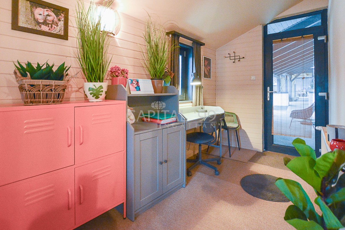 1e wooneenheid 90,00 m²: slaapkamer, slaapkamer, woonkamer, badkamer, toilet, keuken+eetkamer, voorraadkamer, wasruimte+verwarmingsruimte. Garage 25,00 m², carport 20,00 m². Terras 100 m².