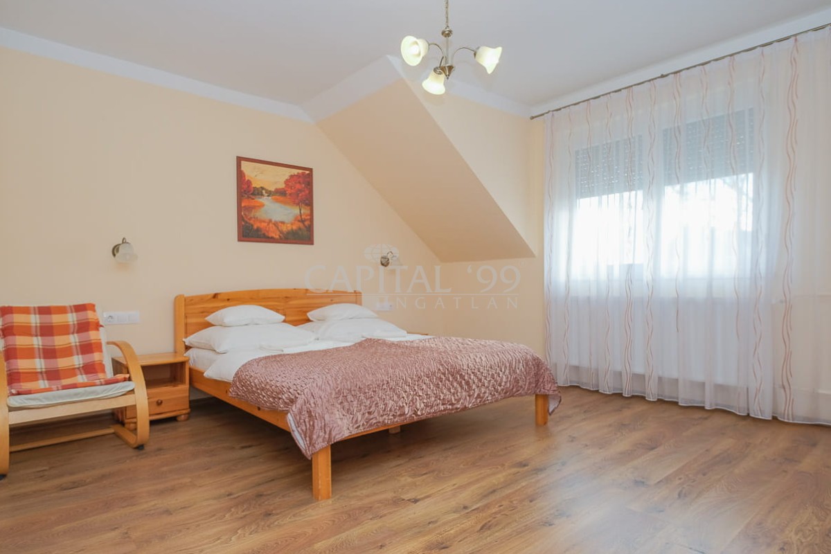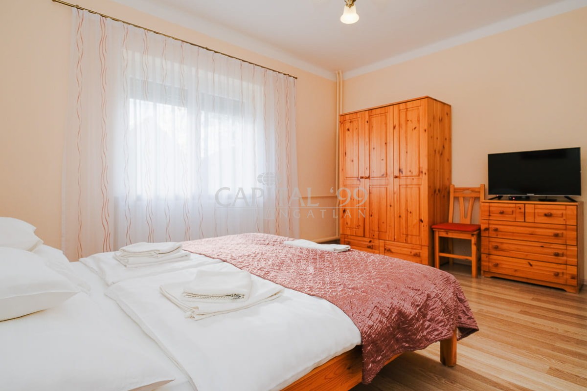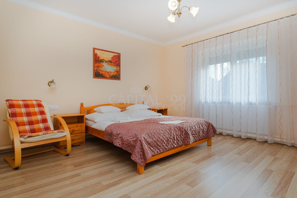 code number: 4370In de meest gewilde straat van het kuuroord Hévíz staat dit woonhuis met 4 afzonderlijke wooneenheden te koop. Het huis is verbouwd tot twee grotere en twee kleinere appartementen, elk met een eigen ingang. Het huis is al jaren in het seizoen verhuurd en kan bogen op terugkerende vaste gasten. Indien nodig kan het huis op korte termijn worden bewoond. De eigenaren geven de voorkeur aan betaling in euro's. Het thermale meer ligt op slechts 10 minuten loopafstand. Deze woning is een buitenkans: een uitstekende investering of een ideale vakantiewoning voor een groot gezin.