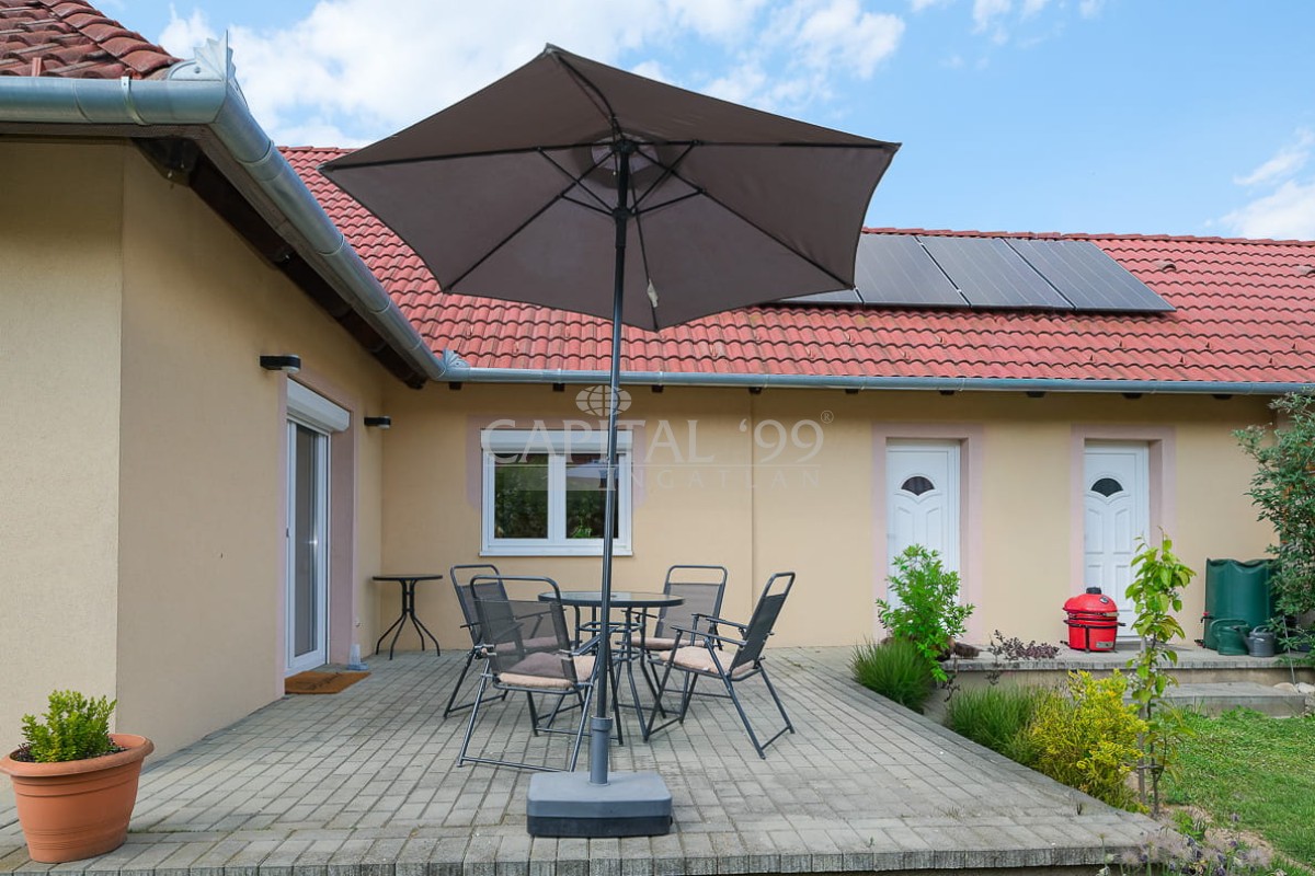 Wij bieden deze woning, gebouwd in 2015, in uitstekende staat te koop aan. De woning is gelegen in het centrum van Cserszegtomaj, in een rustige zijstraat. Het huis staat op een liefdevol onderhouden, omheind perceel van 800 m², met een unieke sfeer dankzij zorgvuldig gekozen elementen zoals een decoratieve schutting, een goed onderhouden gazon, fruitbomen en sierplanten.