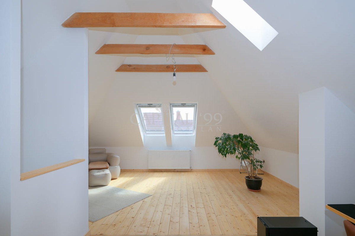 Zolderverdieping 60,62 m²: woonkamer 33,43 m², gang 1,90 m², badkamer 8,06 m², slaapkamer 14,11 m², kledruimte 3,12 m².